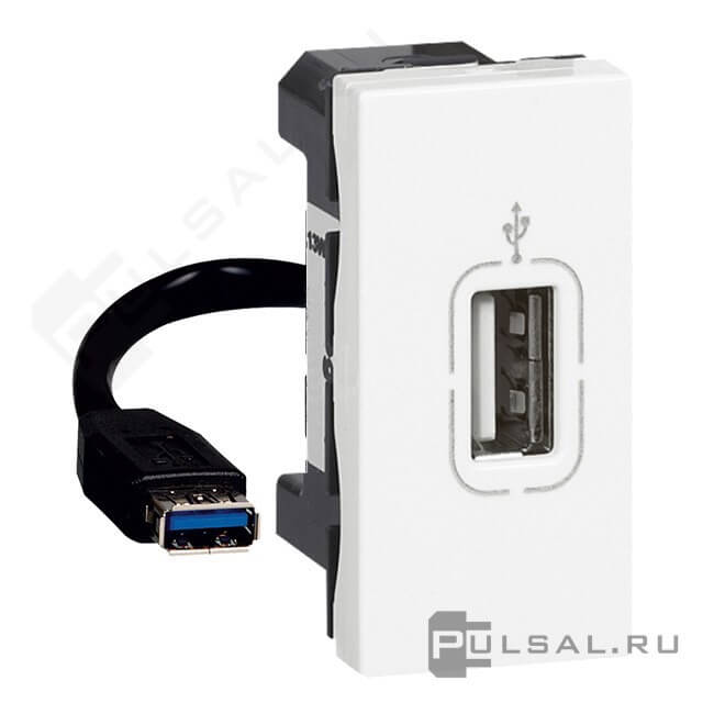 Зарядка USB type-A, 0, 75A Mosaic, DLP, DLP floor, DLP IP 44, DLP IP 40, USB type-A 5V, одинарная, цвет - белый