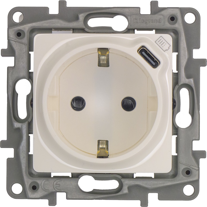 Электрическая розетка с USB type-C, 1,5A, 7,5Вт Etika, USB type-C 5V, Электр. с USB, одинарная, цвет - белый