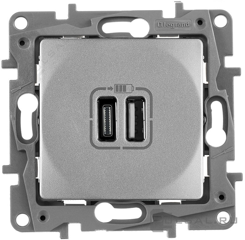 Розетка компьютерная RJ45 Cat.5e (UTP) Etika, одинарная, цвет - алюминий