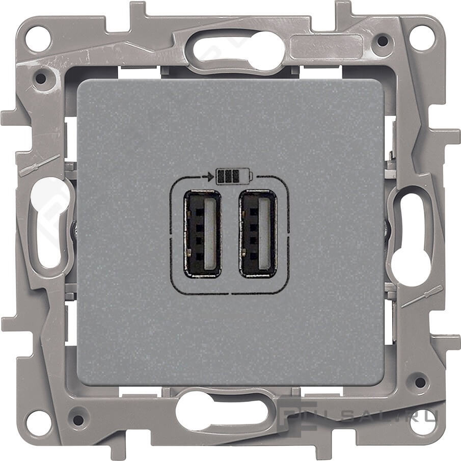 Розетка компьютерная RJ45 Cat.5e (UTP) Etika, одинарная, цвет - алюминий