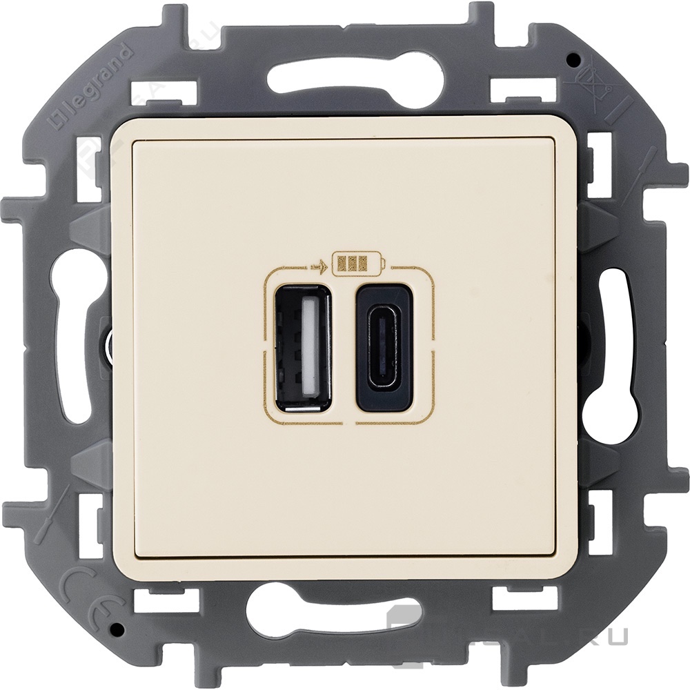 Inspiria, поворотно-нажимной, с возможностью управления с 2-х мест, лампы накаливания и галогенные 220В (R), лампы с индукционным (обмоточным) трансформ.(L), лампы с электронным (емкостным) трансформ.(C), диммируемые лампы LED 220В (LEDi тип L), диммируемые лампы LED 220В (LEDi тип C), цвет - слоновая кость