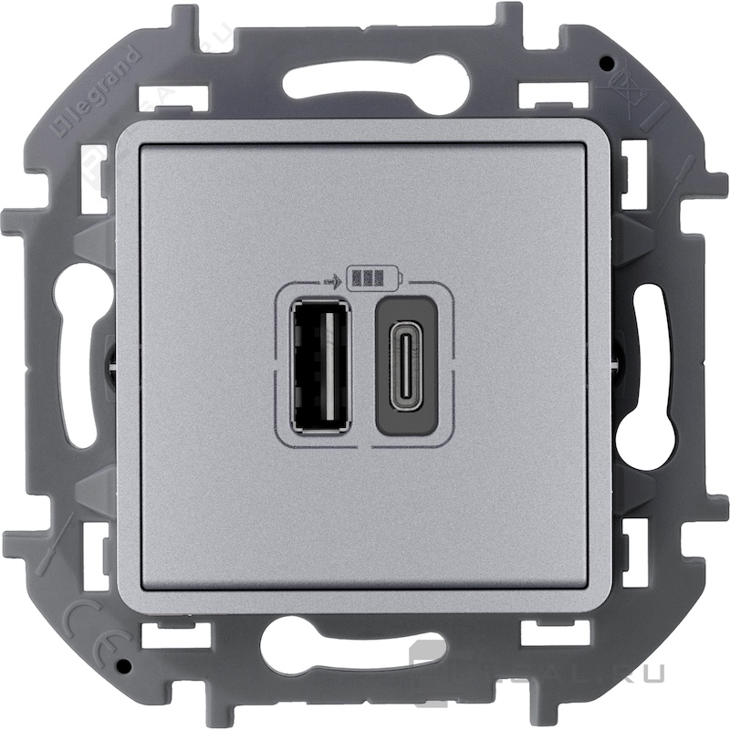 Розетка компьютерная RJ45 Cat.6 (UTP) Inspiria, двойная, цвет - алюминий