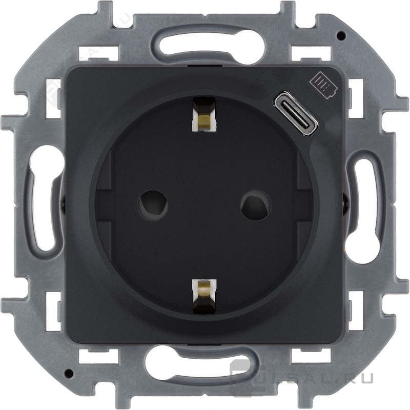Электрическая розетка с USB type-C, 1,5A, 7,5Вт Inspiria, USB type-C 5V, Электр. с USB, одинарная, цвет - антрацит