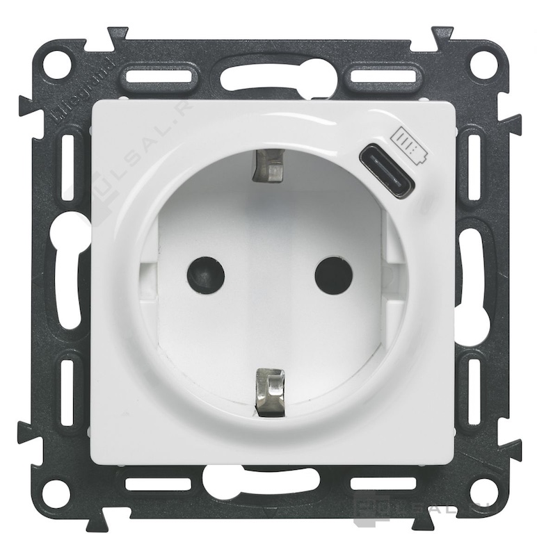 Розетка USB type-C, 3.0А с электрической розеткой Valena Life, USB type-C 5V, Электр. с USB, одинарная, цвет - белый