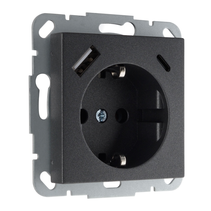 Розетка Epsilon, Retro Liregus, со шторками, с заземлением, одинарная, безвинтовые клеммы, цвет - антрацит