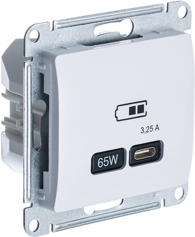 Розетка USB type-A+C 45 Вт с быстрой зарядкой Glossa, USB type-C 5V, USB type-A 5V, двойная, цвет - белый