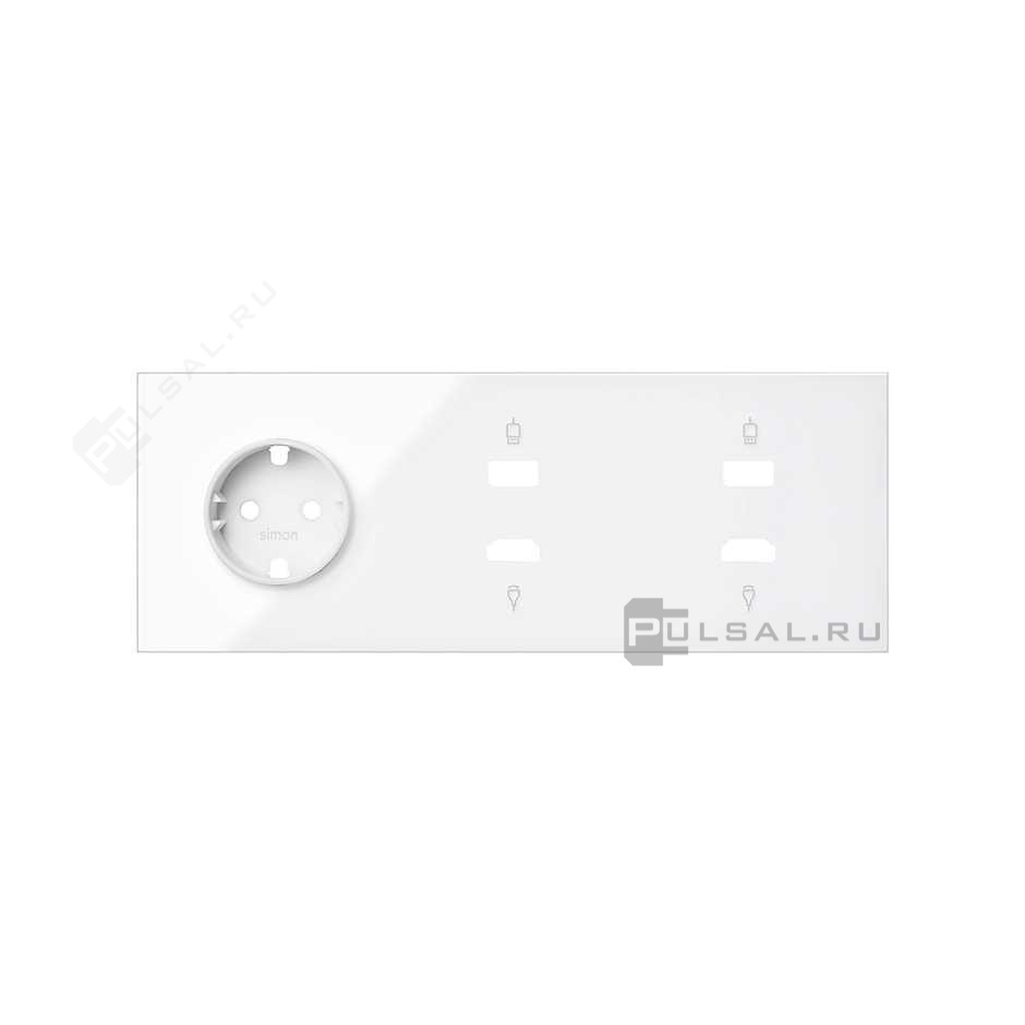 Кит 3 поста, фронт. Накладка на 1 розетку Schuko + 2 розетки HDMI + 2 розетки USB цвета белый глянец
