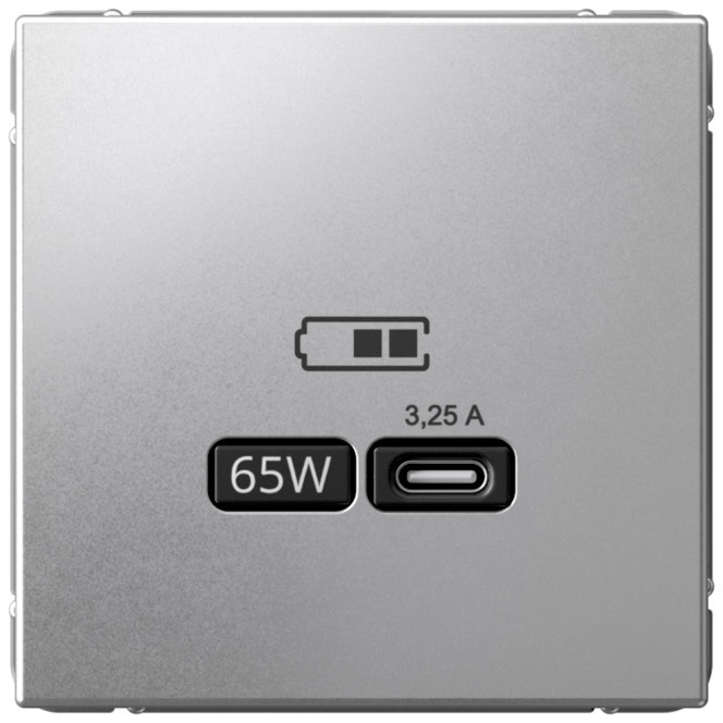 Розетка USB type-C 65 Вт с быстрой зарядкой ArtGallery, USB type-C 5V, двойная, цвет - алюминий