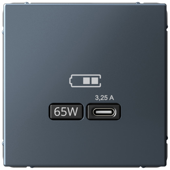 Розетка USB type-C 65 Вт с быстрой зарядкой ArtGallery, ArtGallery Pure, USB type-C 5V, двойная, цвет - грифель