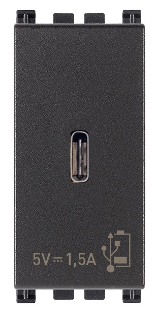 Зарядка USB type-C, 1,5A Arke, USB type-C 5V, одинарная, цвет - антрацит серый