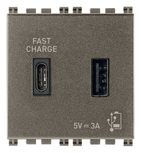 Зарядка USB type-A+C, 3А с быстрой зарядкой Arke, USB type-C 5V, USB type-A 5V, двойная, цвет - металл