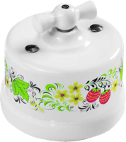 - Лизетта – коллекция изделий в 4 вариантах цветового исполнения. Выключатели и розетки Бирони выполнены из керамики и пластика.